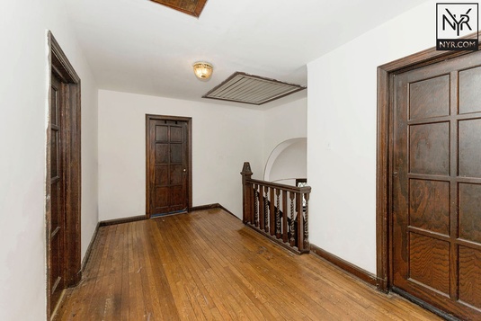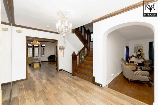 There is an amazing long-stoned paver walkway from the street leading up to the entrance of the home (similar to strolling the yellow brick road). This corner Tudor home has seven large rooms, two and a half bathrooms, and a side entry oversized attached two-car garage with interior access. As you approach this home you are adorned by this arched gothic doorway. As you enter, you are immediately drawn to the interior rotunda. From the rotunda, you have a choice of walking to the lower level of the home through a solid eight panel wood door, or ascending a few wooden steeps, you reach an open hallway where you can choose your destination. Your choices would be the formal dining room, the enormous living room with a fireplace, a versatile office or bedroom, eat-in kitchen, or the washroom. As a corner property, the abundance of windows allows for considerable natural light to fill every room.