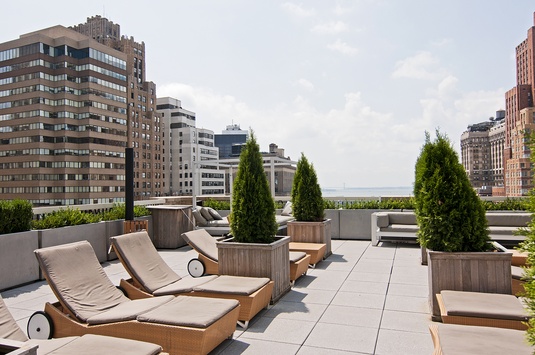 24 hour doorman, live-in super, landscaped roof deck and lounge, billiard's room, gym, cold storage, bike storage and laundry on every floor.