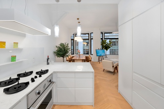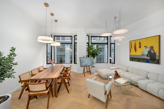 Set within the original Diamond Exchange of New York, this expansive home offers soaring ceilings, exceptional light through historic bay windows, and an extraordinarily solid structure originally engineered to support diamond safes—ideal for grand furnishings, art collections, or a piano.