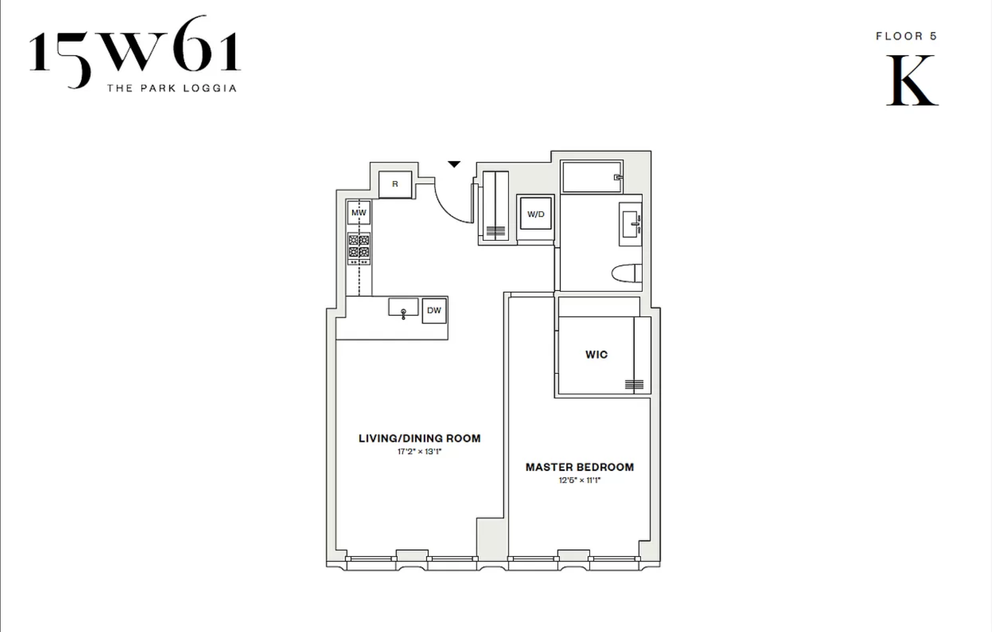 5K features a wide-planked white oak floor, floor-to-ceiling windows, a washer/dryer, and a walk-in closet. The building features a driveway, a doorman-serviced lobby, and a rooftop. Amenities and services also include a concierge, a resident lounge with a fireplace, music practice rooms, a screening hall, a children’s playroom, virtual golf, a fitness center, a game room, and landscaped outdoor terraces with BBQ.