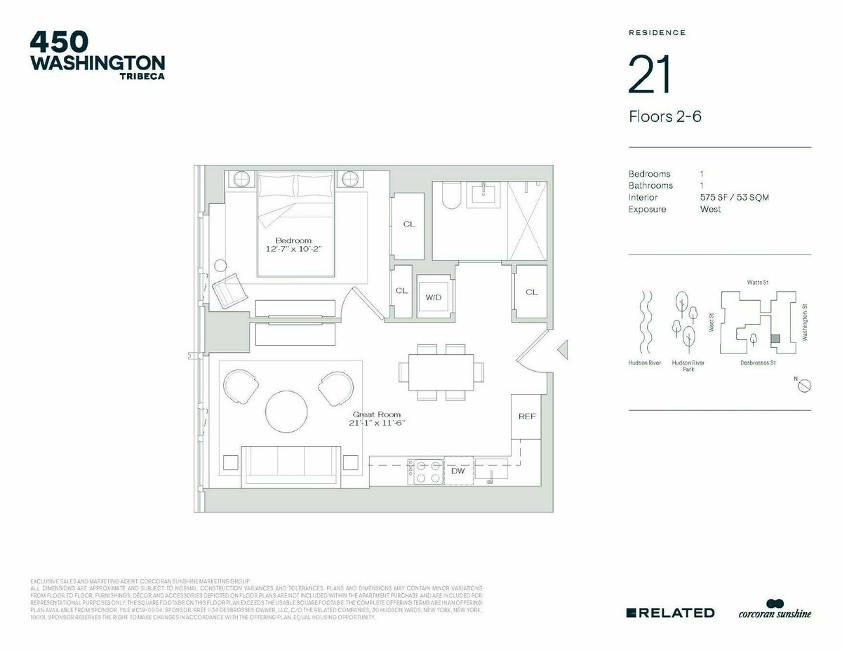 Leveraging RELATED’s expertise in pairing of lifestyle programming and best-in-class property management, this highly-serviced property will include a comprehensive amenity suite, including a 12th floor roofdeck with magical Hudson River sunset views, golf simulator, lounge with fireplace, private dining room, business center, fitness center, and children’s imagination center. Residents of 450 Washington will also enjoy exclusive programming, community events and preferred access, tickets and other benefits to an elite segment of art, media, fashion, culinary, wellness and cultural experiences provided by Related Life. Parking and storage are available for additional fee.